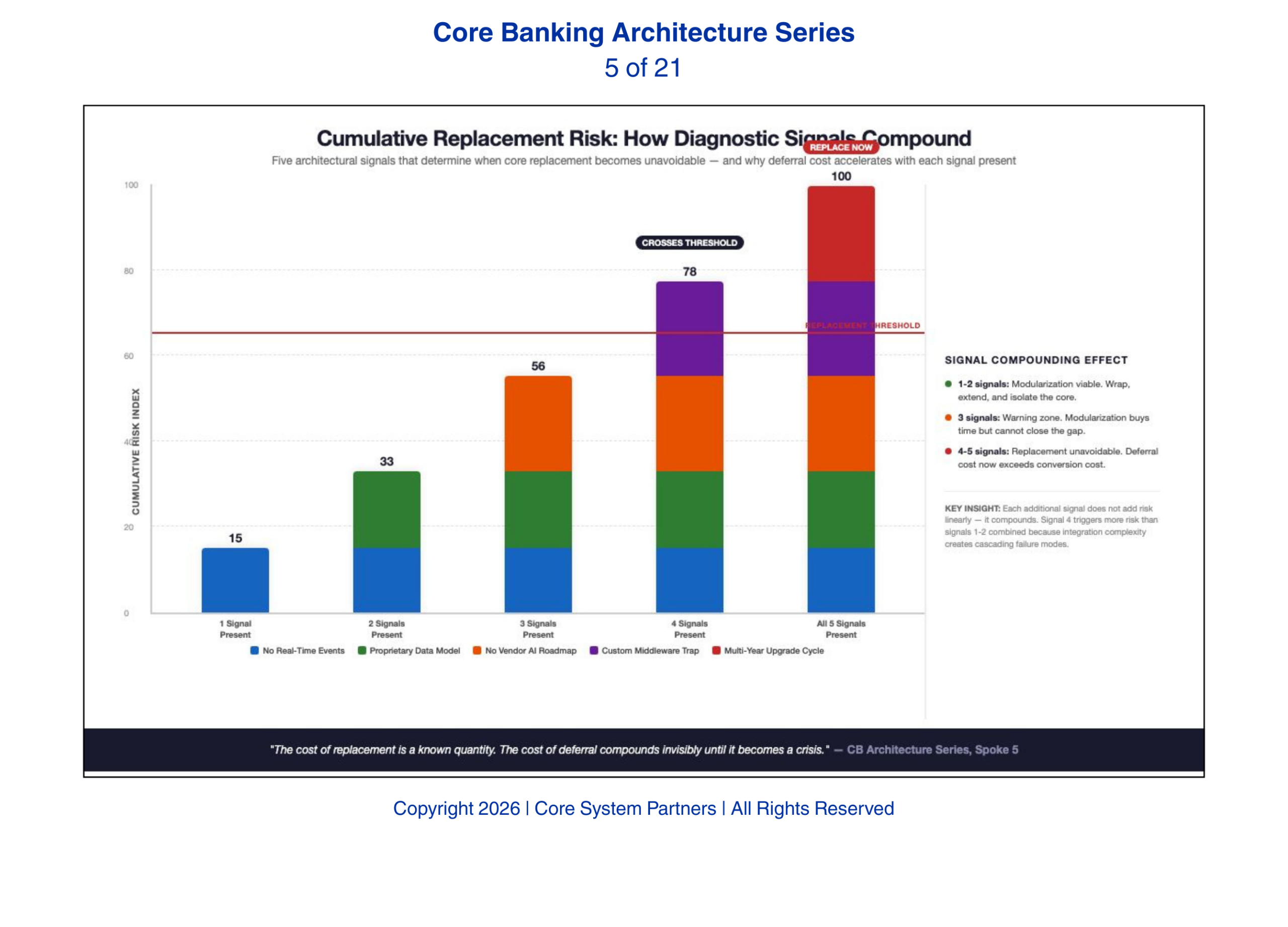 Core System Partners’ Transformation Readiness Scorecard gives leadership teams a structured assessment of where they stand across all five signals — and a clear view of whether modularization, replacement, or a phased combination is the right path. The assessment takes under an hour and produces actionable prioritization, not a slide deck.