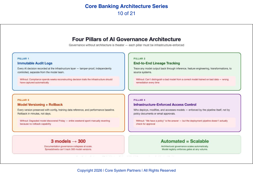 AI governance doesn’t fail from lack of documentation, it fails from lack of architecture. In core banking [...]